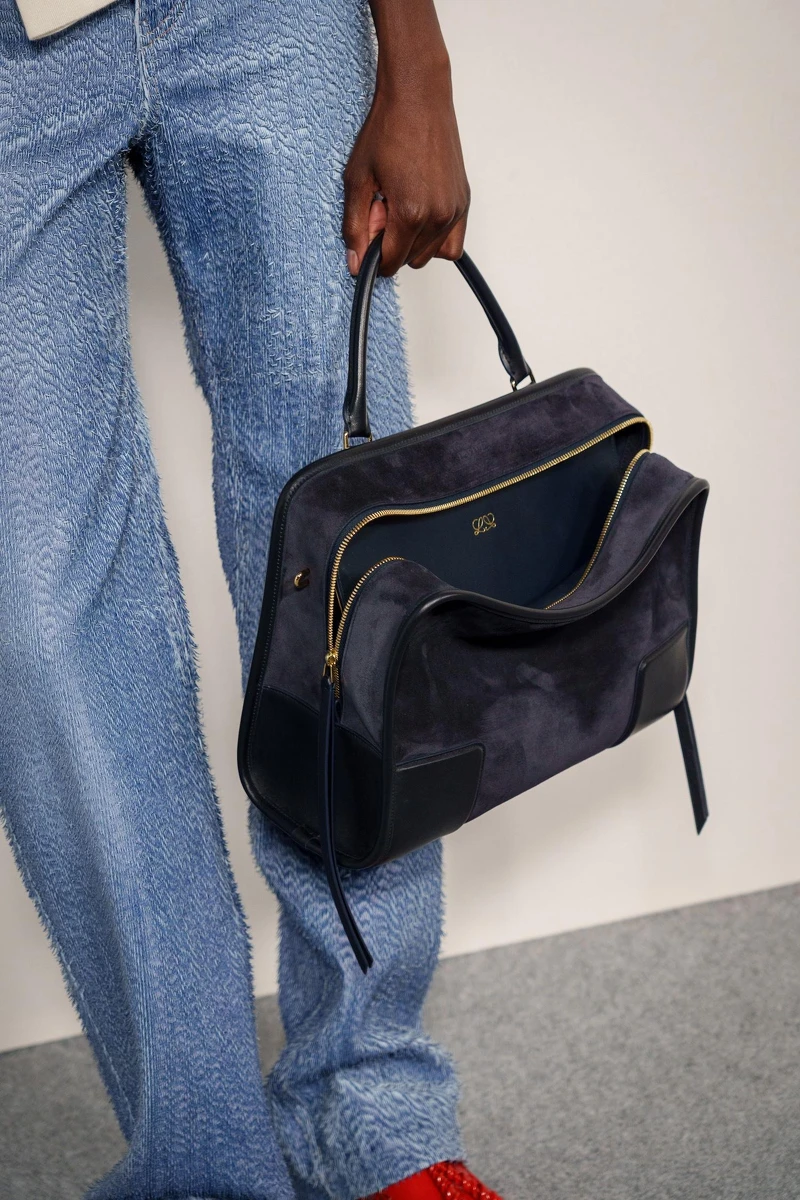 从搭配的角度切入,不难注意到2026春夏多为大包包的天下,托特包、保龄球包、肩背包等均有着小旅行的容量,在秀上不以常理的肩背方式搭配,反而是以手拿,另有一种随兴、不羁的率性感。