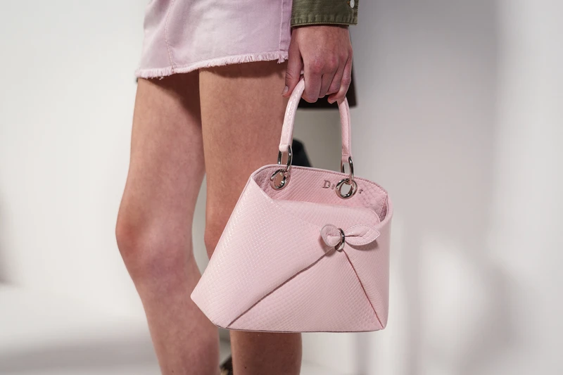 Loewe 2026春夏包款 有Jonathon Anderson坐镇的Dior,品牌大使Jisoo率先曝光秀款新包,像是摺纸一般将一张皮革摺出立体包型,缀上可爱扭结,提把打洞的五金之处拼出品牌Dior之名,典雅外型很Dior,玩味之处又很有Jonathon Anderson的个性。
