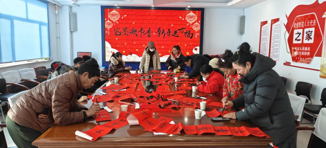 春节将至,为营造欢乐、祥和、喜庆、年味浓郁的新春氛围,进一步弘扬中华传统文化,丰富辖区广大家庭文化生活,岭北社区妇联组织开展“笔墨凝书香 新年送万福”迎新春活动,让辖区妇女群众更好地感受我国传统节日的喜庆与热闹的气氛。