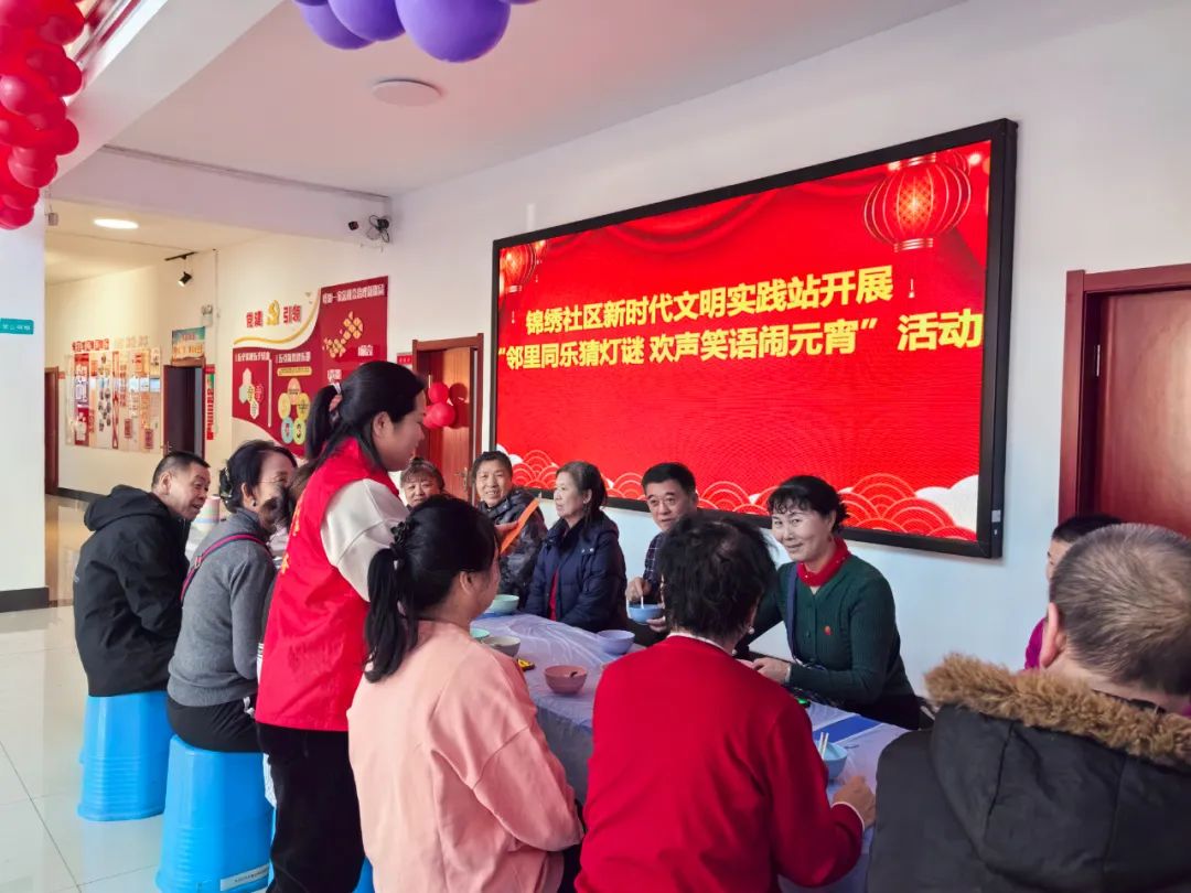 二、开展“邻里同乐猜灯谜 欢声笑语闹元宵”主题活动。2月10日,鹤岗市兴安区锦绣社区新时代文明实践站开展“邻里同乐猜灯谜 欢声笑语闹元宵”活动。活动独居老人、环卫工人、辖区居民齐聚一堂,设置猜谜语、包汤圆等环节,现场欢声笑语不断。老人、环卫工人纷纷表示,这样的活动让他们感受到了传统节日的独特魅力,也让社区充满了家的温暖。